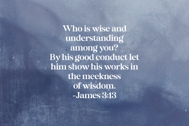 “Who is wise and understanding among you? By his good conduct let him show his works in the meekness of wisdom” (James 3:13).